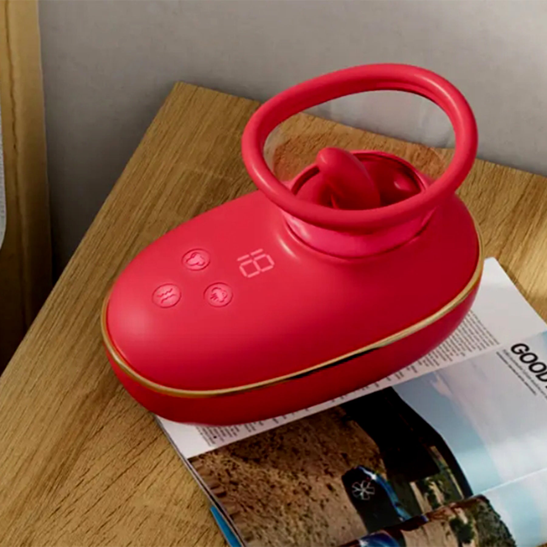 Vibrator LovePlay™ Buzz 3 in 1 cu 9 feluri de vibratie, stimulare orala si suctie, rezistent la apa, din silicon, rosu, reincarcabil magnetic USB, design discret, usor de folosit, 11 x 6 cm, 161 g - LovePlay