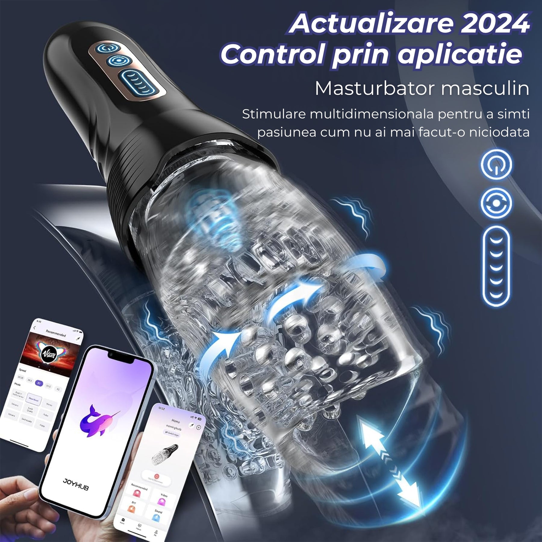 Masturbator automat Obsessia® RotateX, 10 moduri de vibratii si 5 nivele de rotatie, efect ultra-realist, senzatie intensa cu functie de orgasm, jucarii sexuale cu control prin aplicatie, rezistent la apa