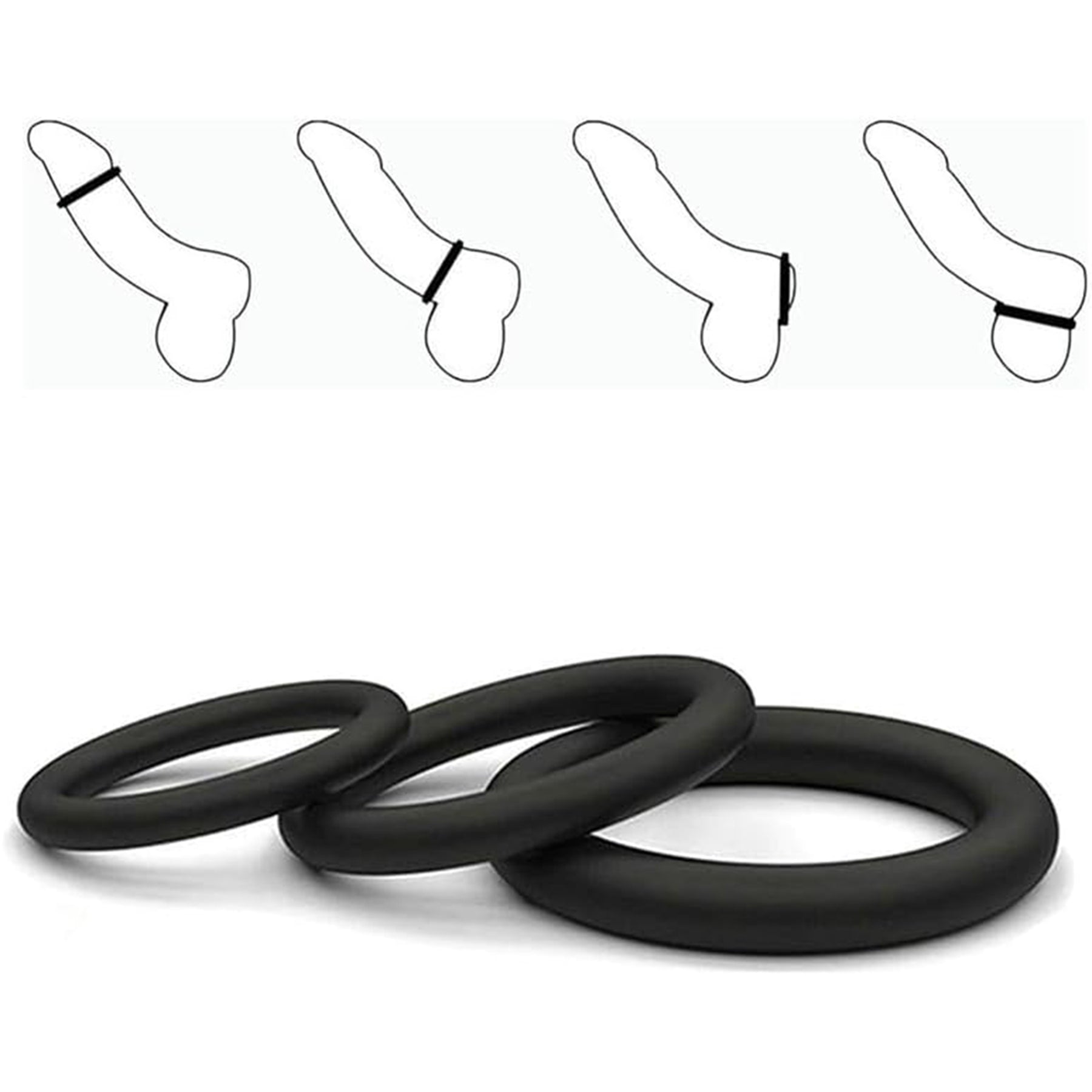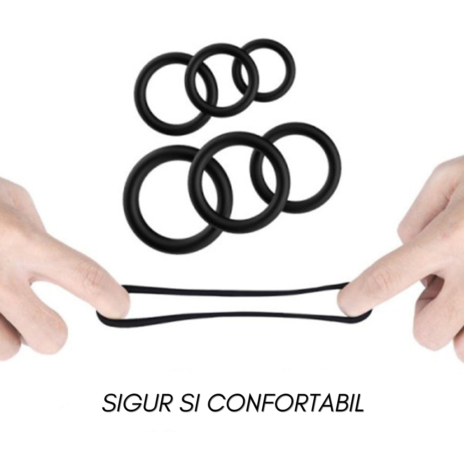 ● Set 3 inele din silicon medical – diametre de 5 cm, 4 cm si 3 cm pentru potrivire personalizata si confort maxim.
