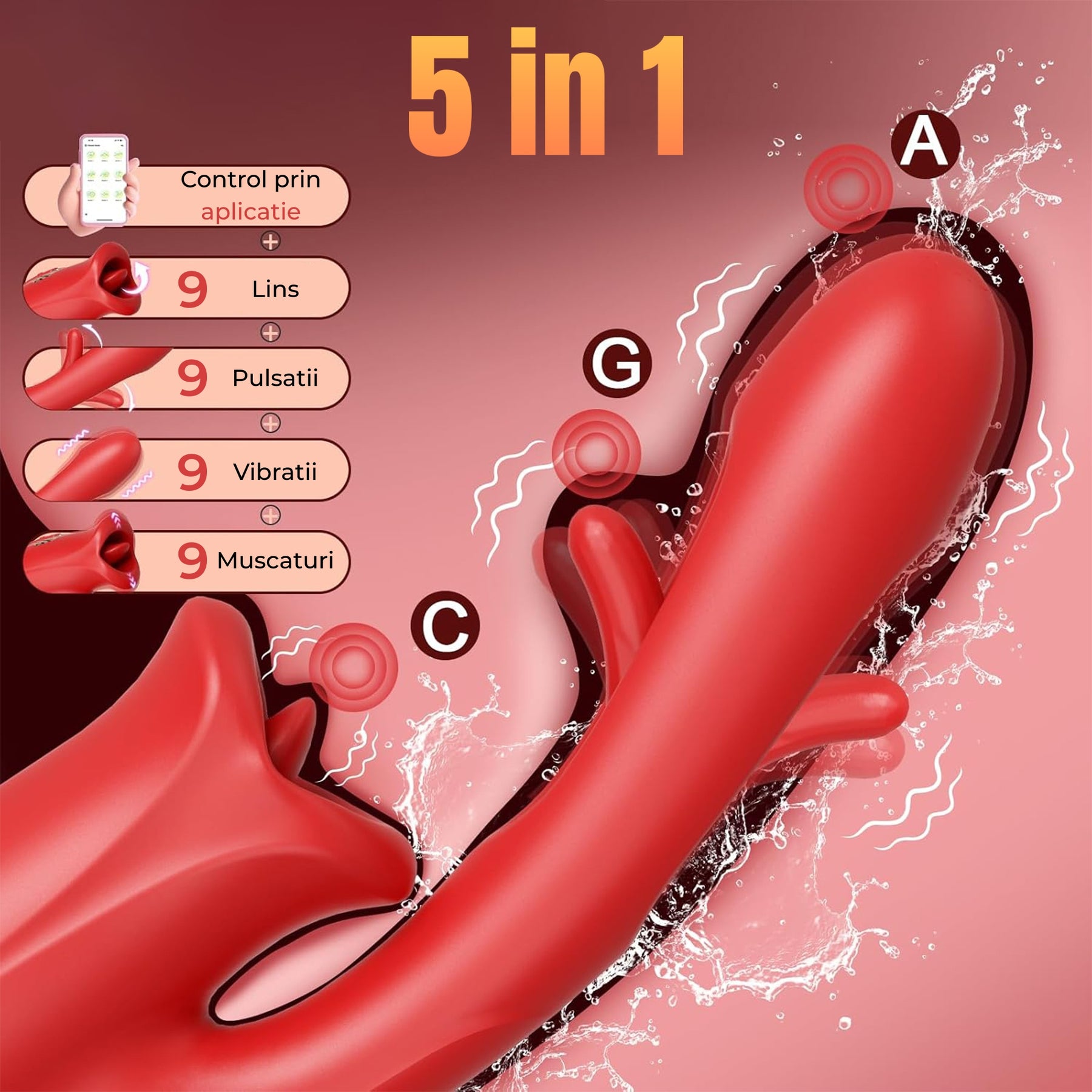 Unul dintre cele mai mari avantaje ale acestui vibrator cu limba este functia de control prin aplicatia mobila. Conecteaza dispozitivul si poti ajusta intensitatea sau modurile de stimulare direct de pe telefon. Aplicatia ofera optiuni variate: sincronizare cu muzica, video play sau chiar mod DIY, unde iti creezi propriile ritmuri. Partenerul tau il poate controla de la distanta, adaugand o doza de mister si complicitate jocurilor intime.